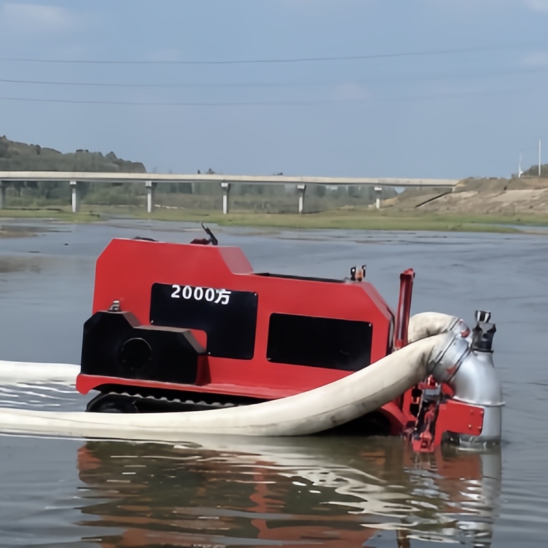 Crawler pump UGV delivers 2000 m³/h drainage with Weichai 150kW diesel power, 500m remote control, IP65 protection, and 300mm obstacle clearance. Built for levee breaches, mine dewatering, and industrial flood control.