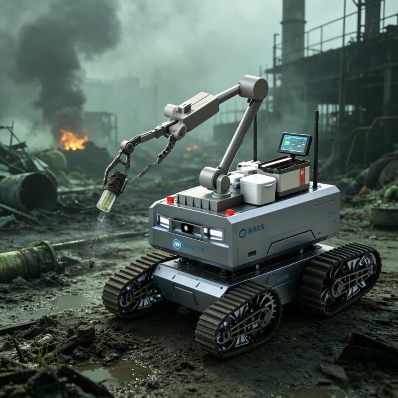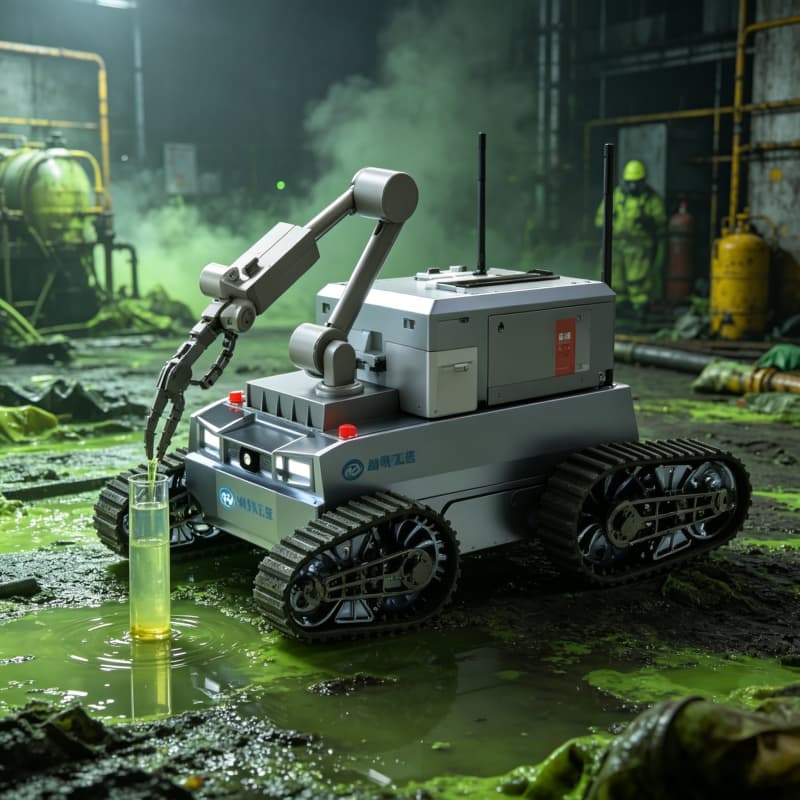 Explosion-proof CBRN robot for nuclear, biological, chemical detection and sampling. All-terrain UGV with real-time data transmission, solid/liquid/gas sample collection, and remote reconnaissance. For hazmat teams, military NBC units, and emergency responders.