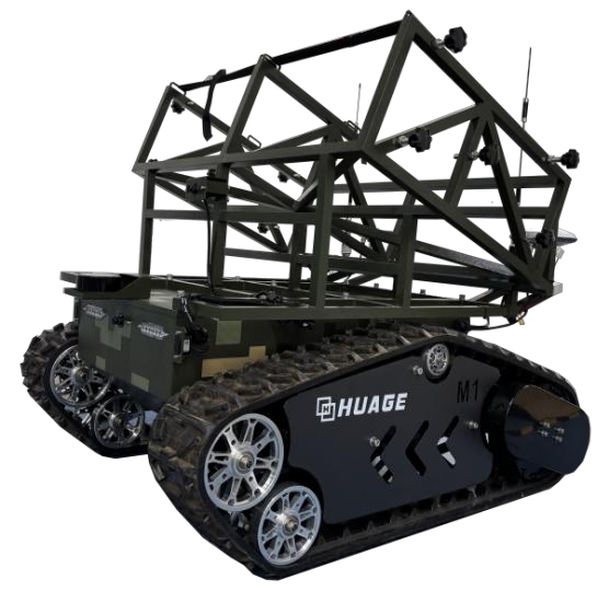 The M1 All-Terrain Tracked UGV is a series of electric-driven intelligent unmanned platforms developed by Nanjing Huage Information Technology Co., Ltd. Adopting a modular architecture for rapid upgrade and maintenance, it is equipped with tank-style independent suspension and a differential track traveling mechanism. The platform features high payload capacity, high speed, strong climbing and off-road performance, as well as 360° in-situ rotation. Adaptable to various complex military all-terrain scenarios, the HUAGE M1 integrates a self-developed VCU and on-board HUAGE intelligent driving module to meet military autonomous driving requirements. It provides a one-stop solution including platform, intelligent driving, and payload application. Fully verified through military customized projects, the HUAGE M1 offers outstanding reliability and stability, and has spawned more than 10 vehicle models to meet diverse mission demands.